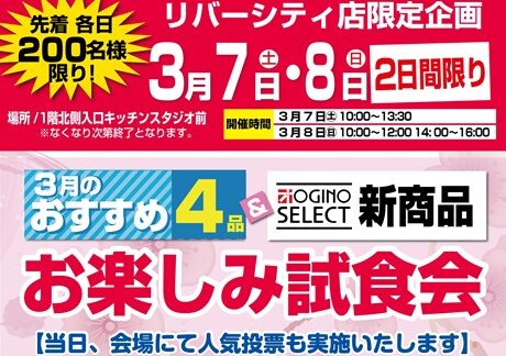 【告知】リバーシティ店☆オギノのおすすめ商品試食会 開催!
