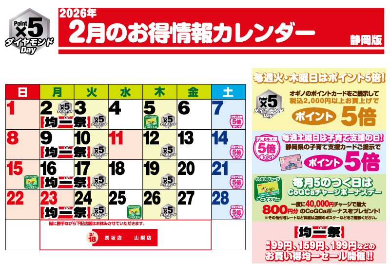 【静岡版】オギノグリーンスタンプカード★ボーナスデー