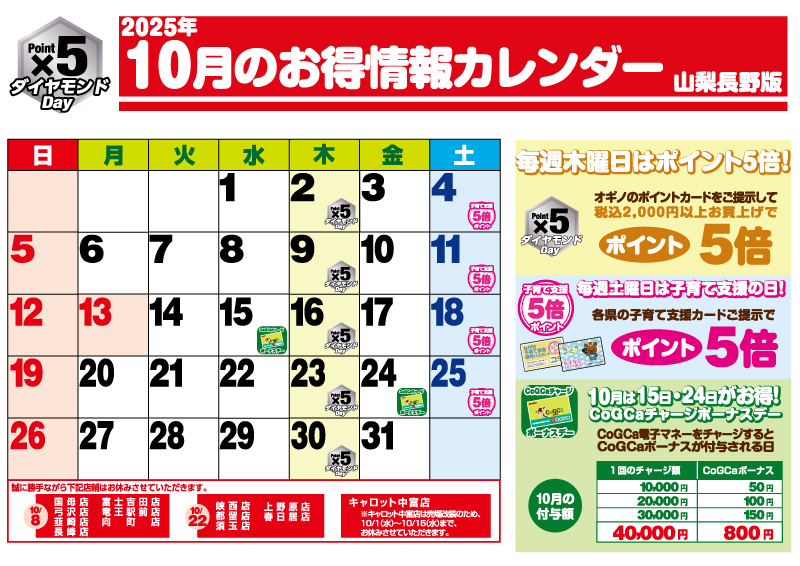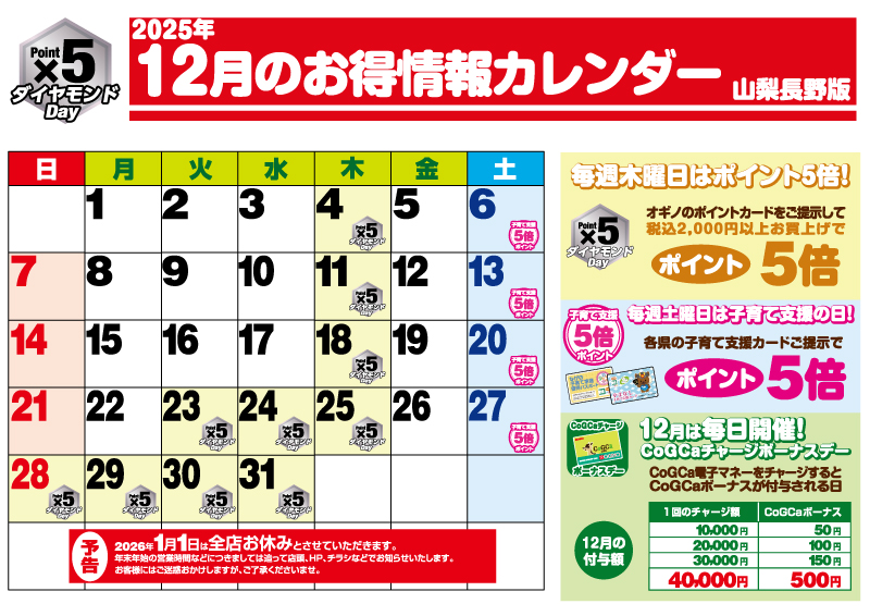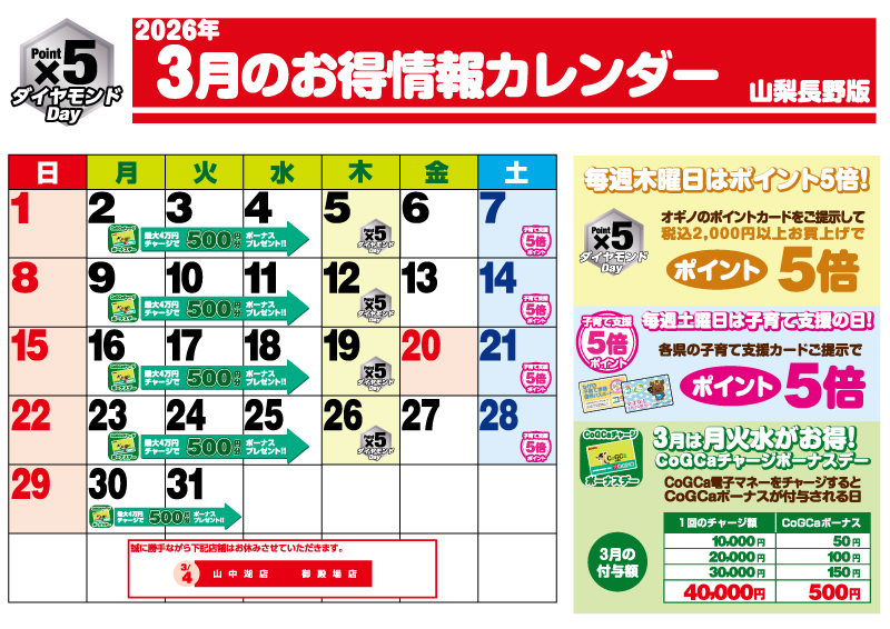 【山梨長野版】オギノグリーンスタンプカード★ボーナスデー