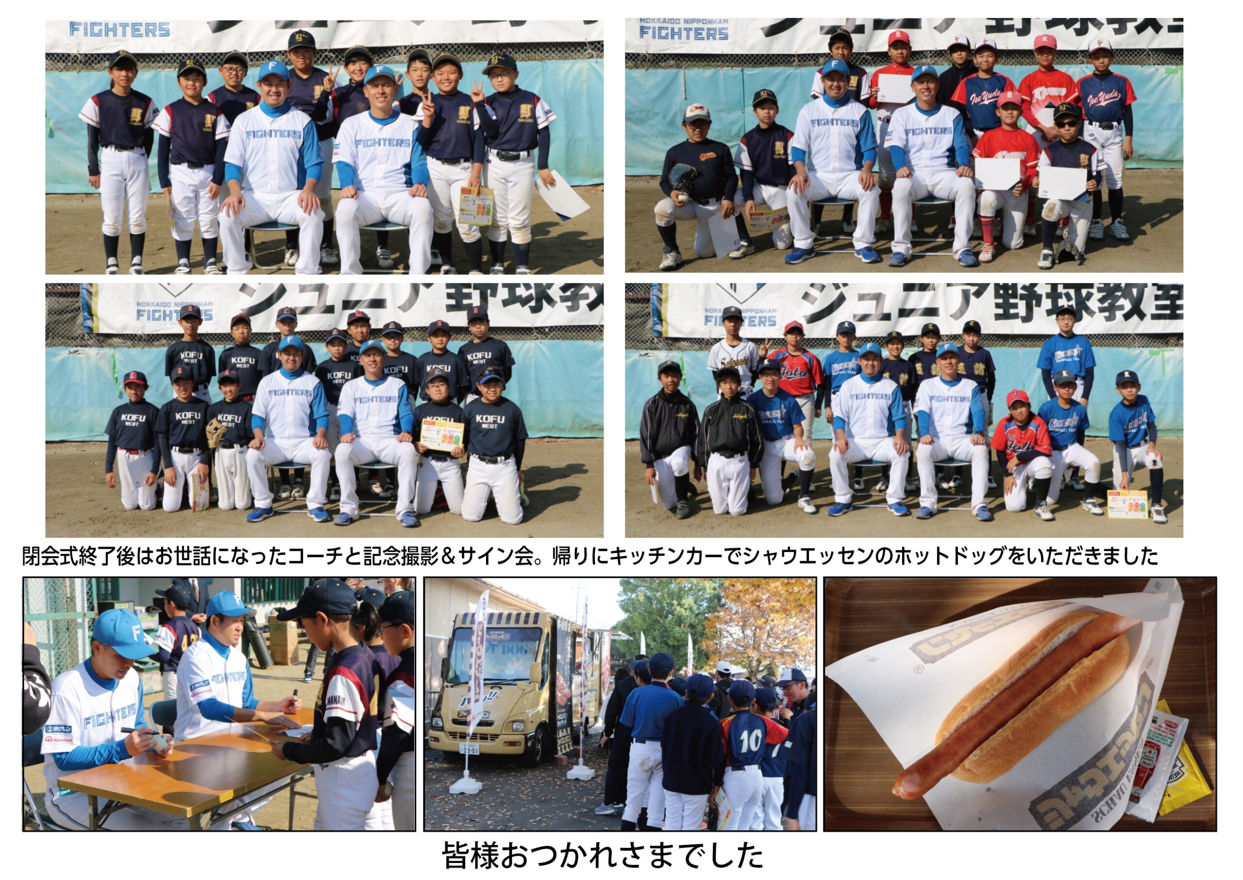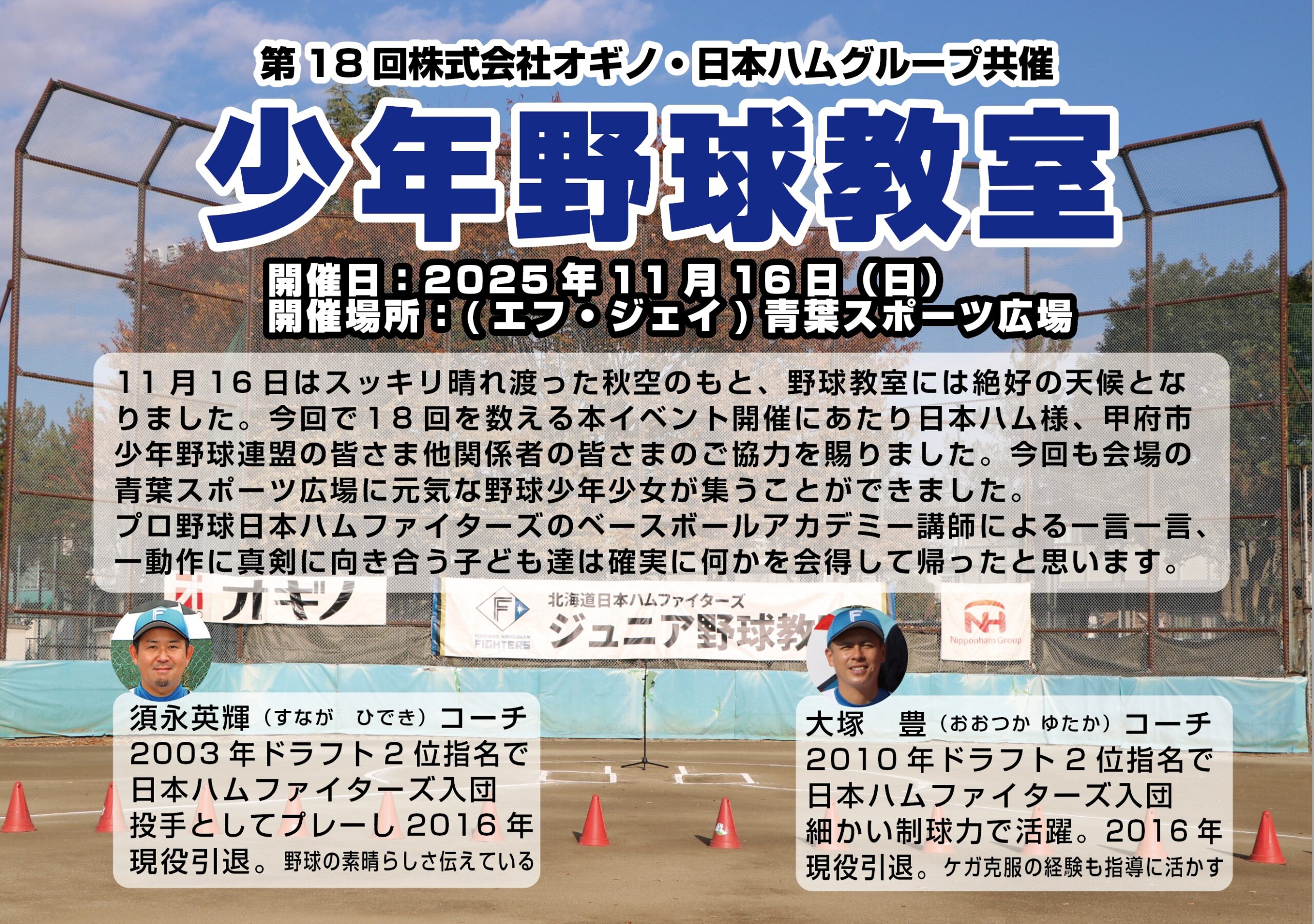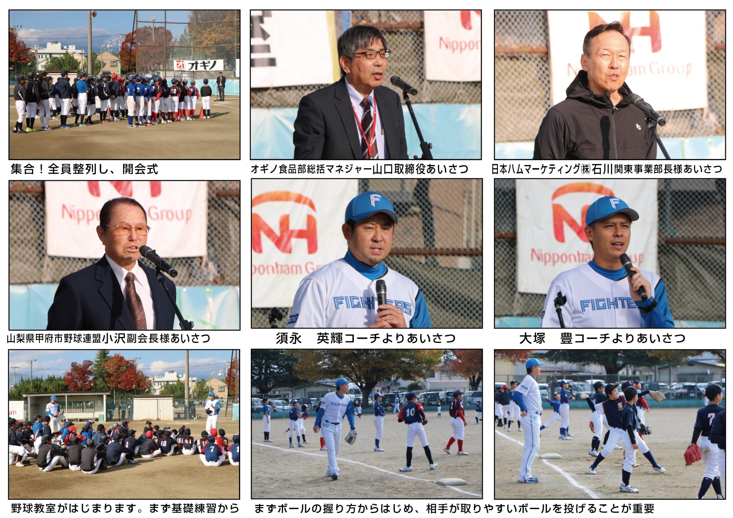 11月16日(日)に「第18回 株式会社オギノ・日本ハムグループ共催 少年野球教室」が開催されました。