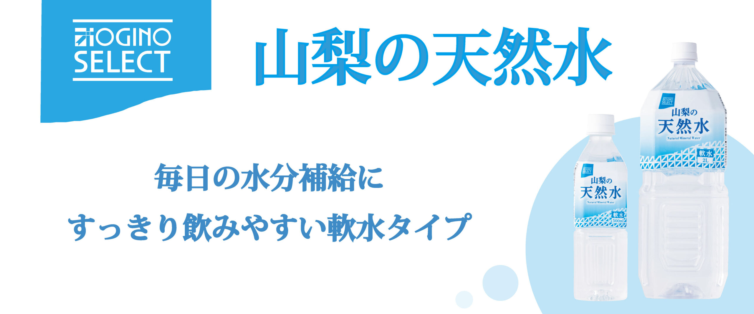 毎日の水分補給に! クセがなくスッキリとした味わいの軟水タイプ。