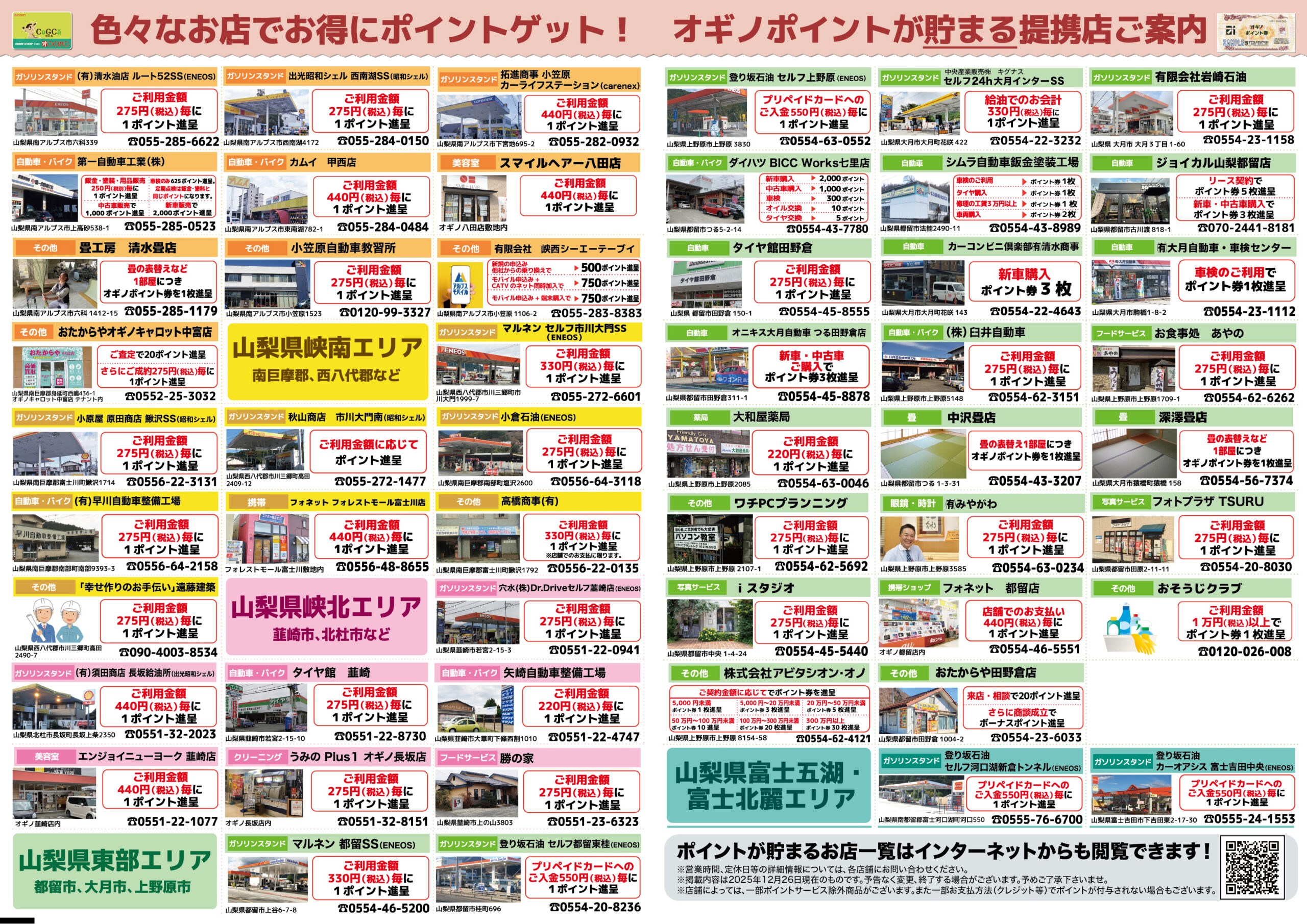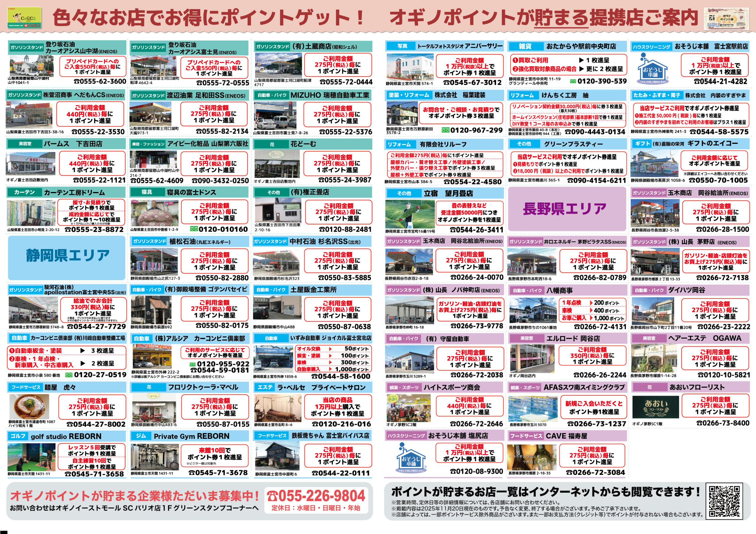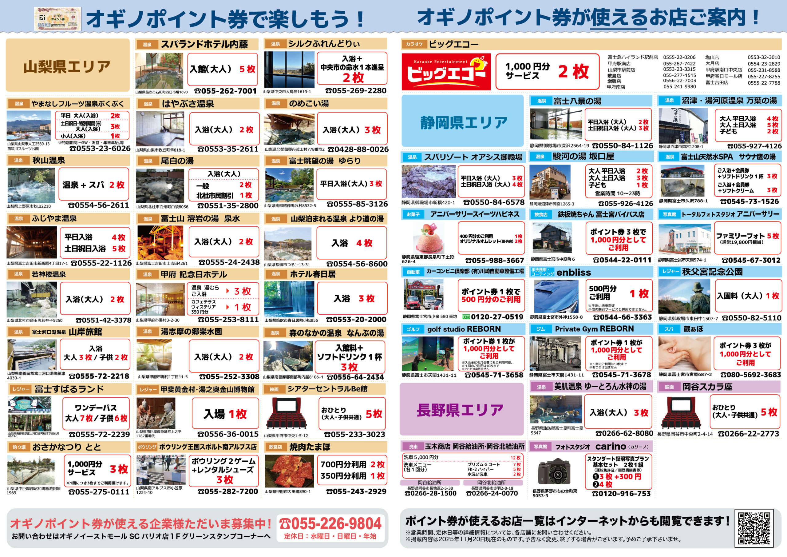 など、貯まったオギノポイント券が使えるお店や施設がございます。