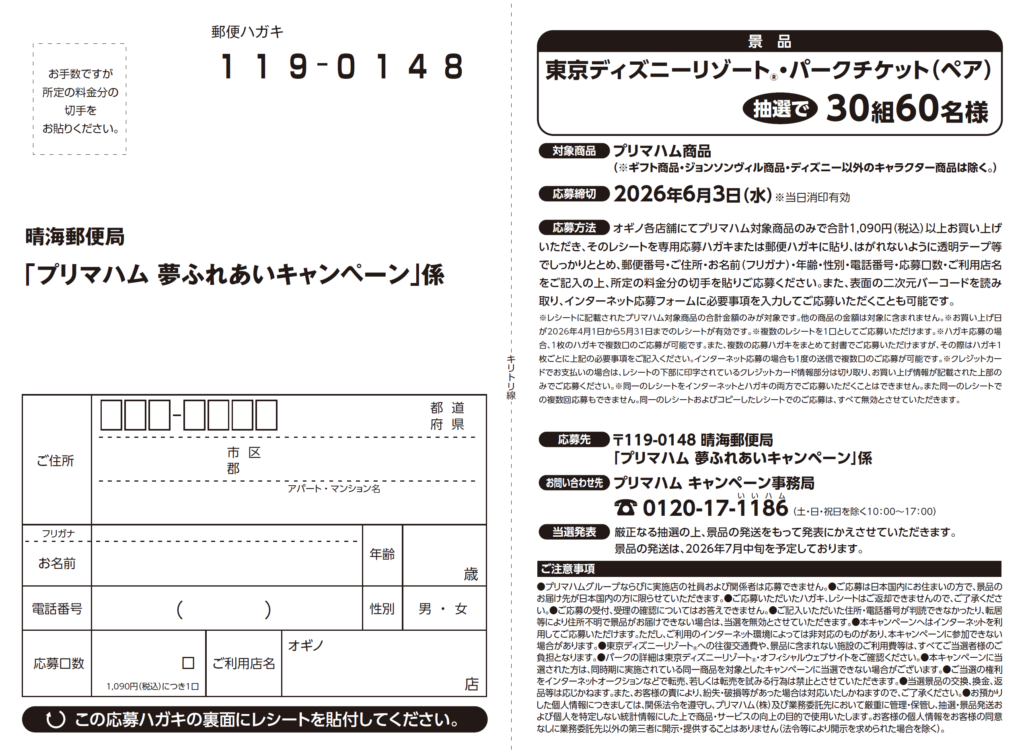 ※下記に専用応募はがきの見本を掲載いたしました。