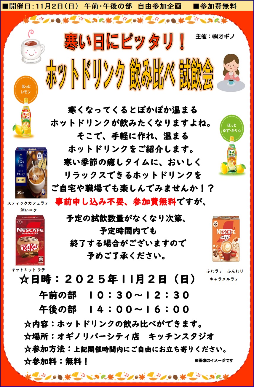 【2025/11/2(日)開催】 ホットドリンク 飲み比べ 試飲会