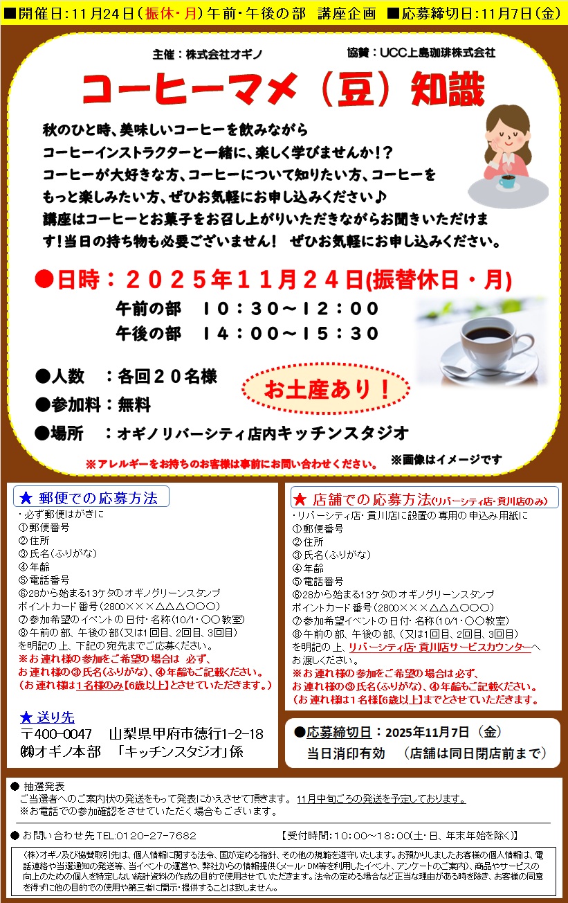 【2025/11/24(振替休日・月)開催】 コーヒーマメ(豆)知識