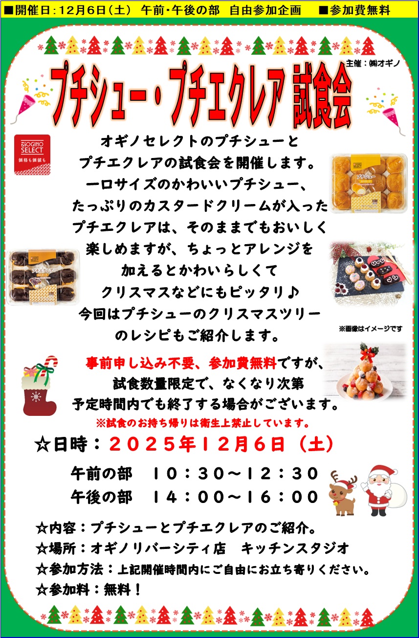 【2025/12/6(土)開催】 プチシュー・プチエクレア 試食会