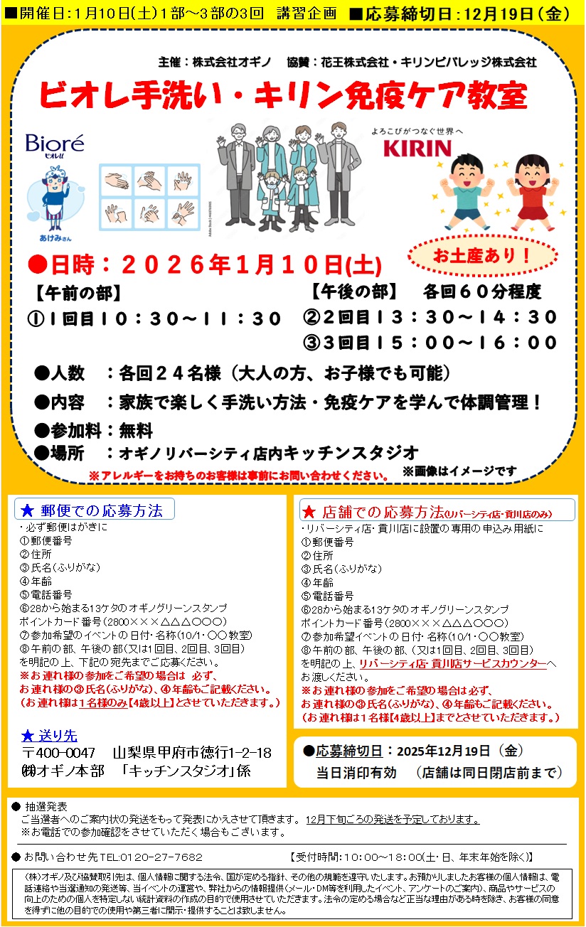 【2026/1/10(土)開催】 ビオレ手洗い・キリン免疫ケア教室