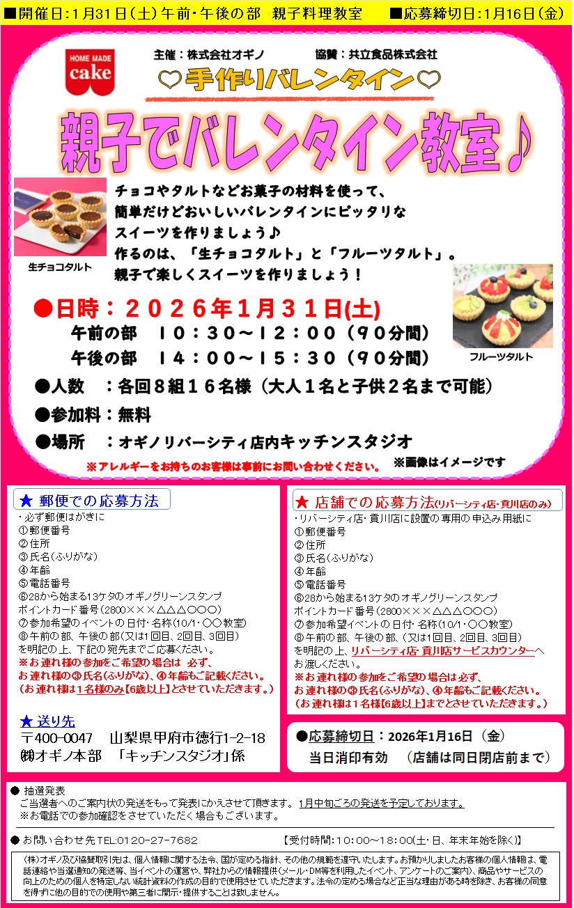 【2026/1/31(土)開催】 親子でバレンタイン教室