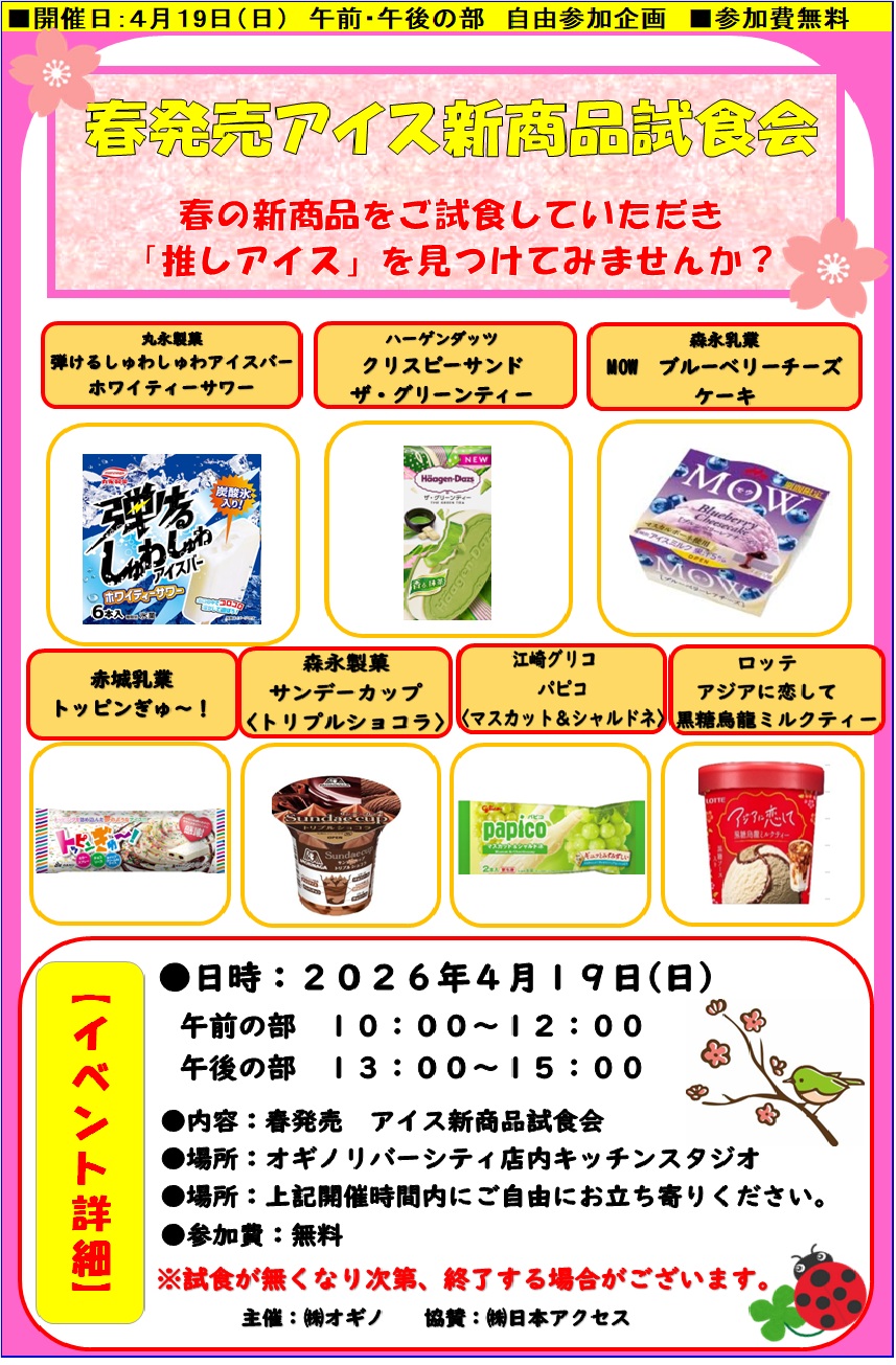 【2026/4/19(日)開催】 春発売 アイス新商品 試食会