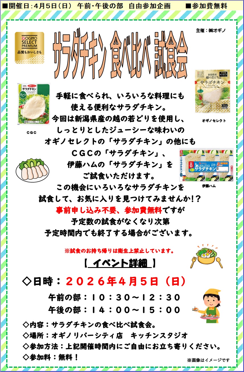 【2026/4/5(日)開催】 サラダチキン 食べ比べ 試食会