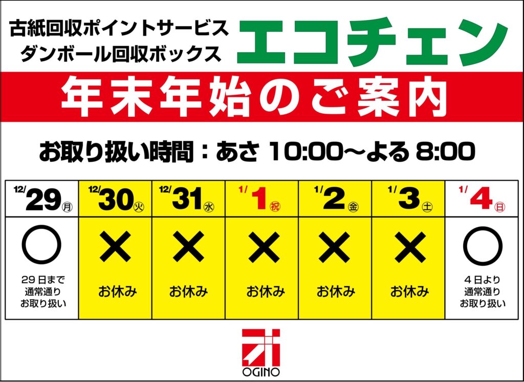 オギノ フリーダイヤル年末年始休止期間のお知らせ