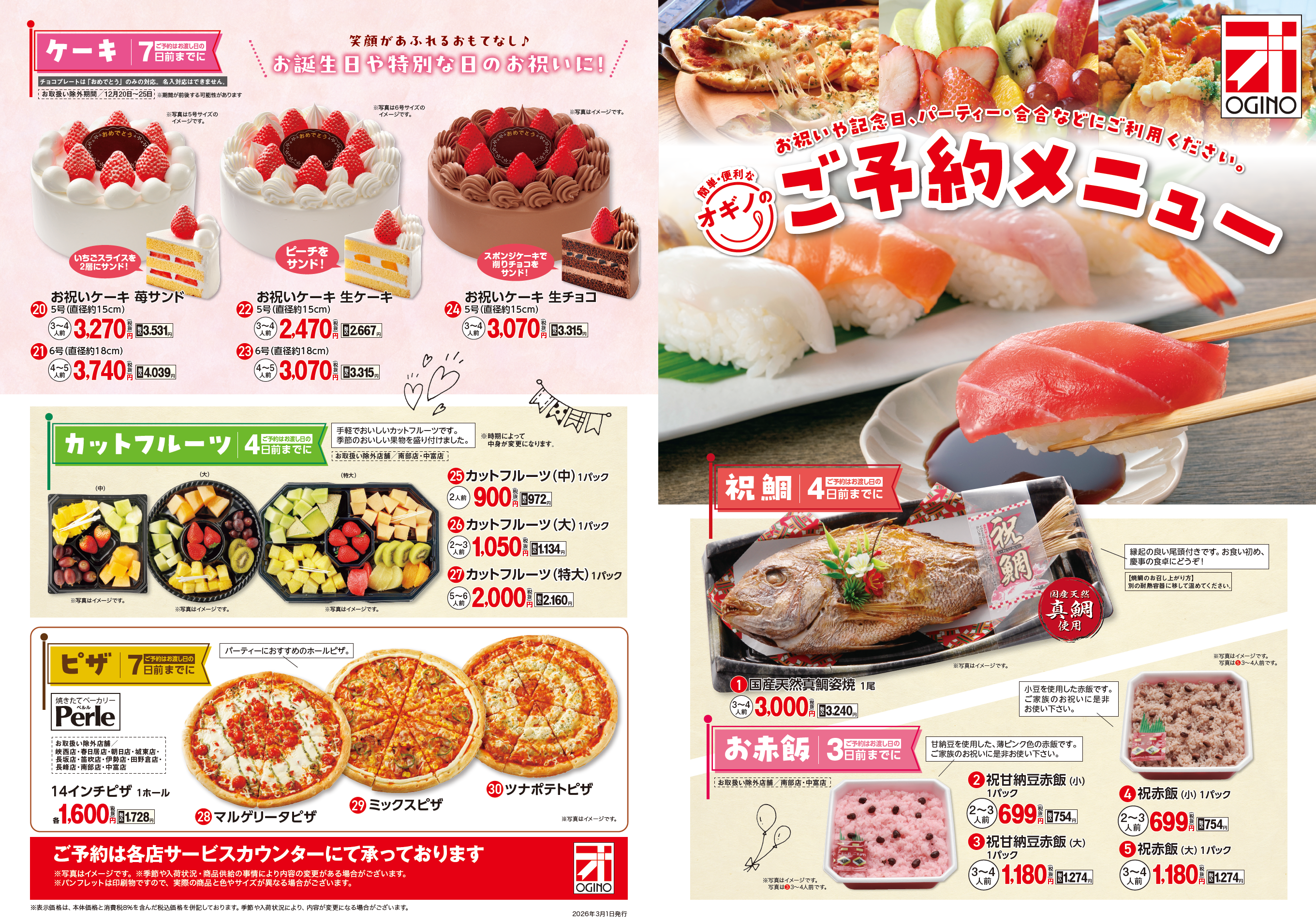 2026年版オギノ「ご予約メニュー」パンフのご案内