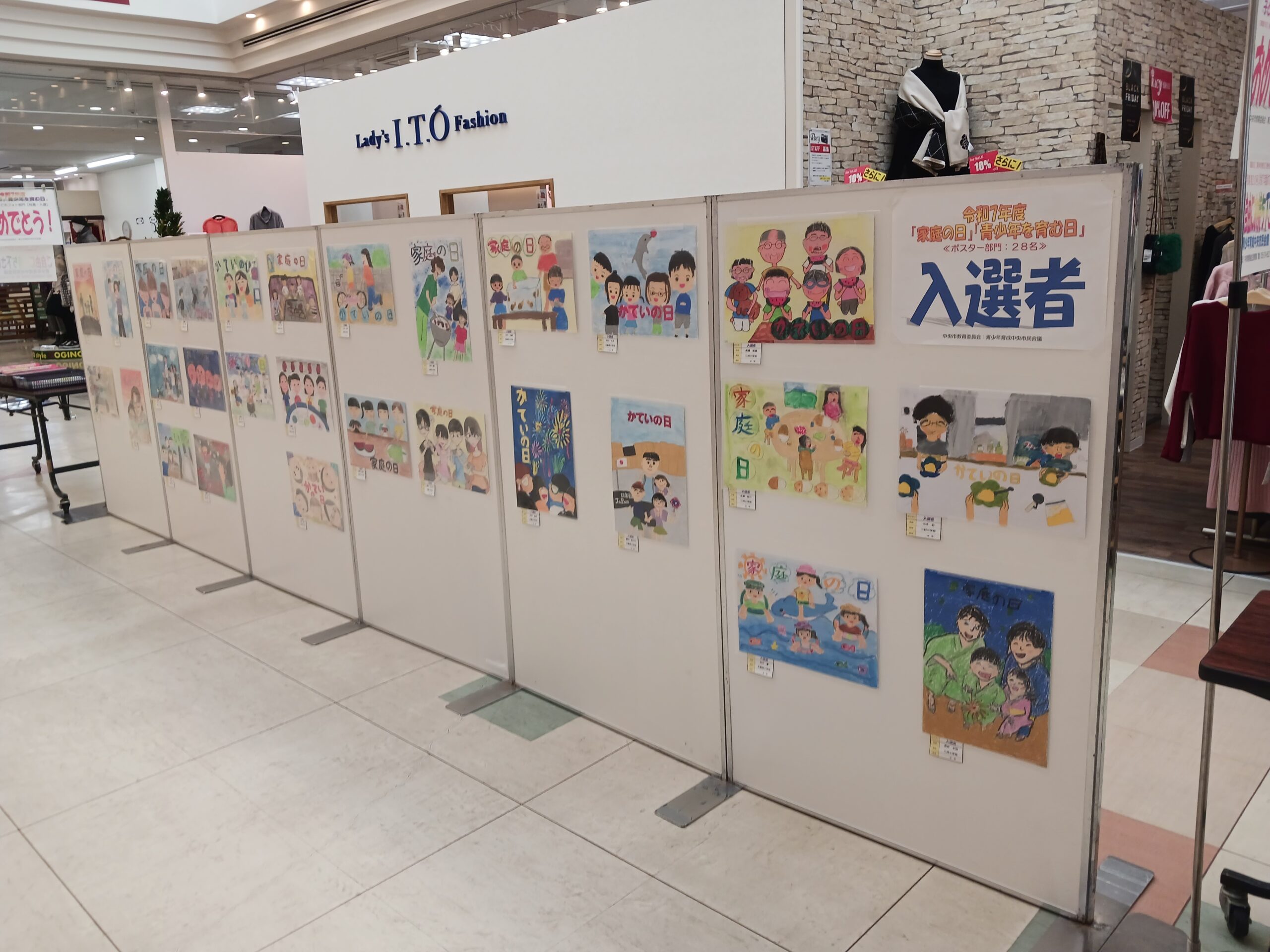 この展示は、家族の温もりを感じて絆を深める日の普及、啓発に努めることを目的として募集した作品(ポスター・フォト)です。